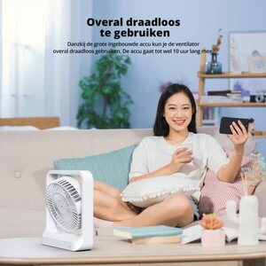 De veelzijdige draadloze ventilator is geschikt voor elke ruimte. Of het nu in je slaapkamer, woonkamer, kantoor, op de camping of in de tuin is, deze ventilator zorgt altijd voor verkoeling waar je het nodig hebt.