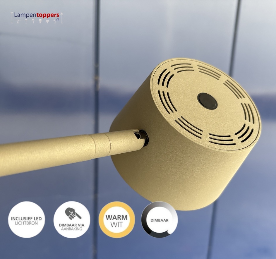 Met de praktische dimmer op het kapje pas je de lichtsterkte aan jouw activiteit aan. Ideaal voor lezen, werken of ontspannen. De ronde voet zorgt voor stabiliteit en de slanke metalen staander geeft de lamp een minimalistische look.