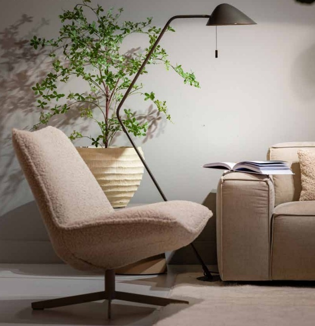 Breng direct sfeer in huis met de Lotte vloerlamp: een elegante, functionele vloerlamp in warm anodic brown die looks en gebruiksgemak combineert. Dankzij de geïntegreerde trekschakelaar zet je licht aan of uit met één simpele beweging dus geen gedoe met voetdimmers of lastige schakelaars. De lamp is draaibaar en kantelbaar, zodat je het licht precies richt waar je het nodig hebt: lezen naast de bank, accentverlichting bij een plantenhoek of sfeerverlichting in de hal.