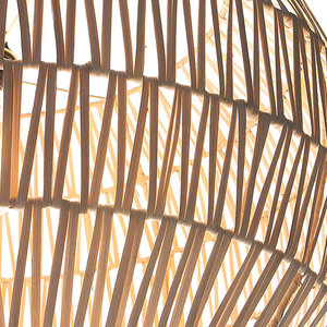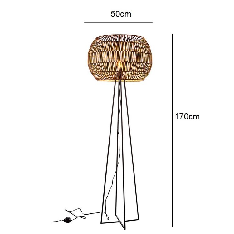 Een prachtig vormgeven vloerlamp met een gevlochten rotan lampenkap van 50 centimeter doorsnee. Deze handgemaakte lamp is een sieraad voor het interieur.