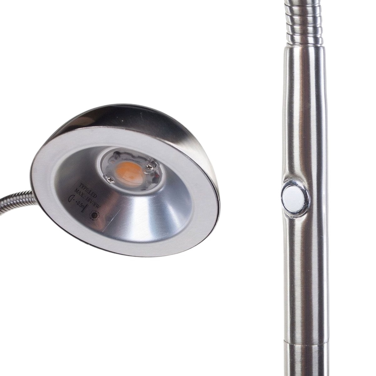 Een functionele leeslamp met een krachtige ingebouwde led van 8Watt. Deze vloerlamp Parma heeft op de lamp zelf een touchdimmer voor het juiste leeslicht.