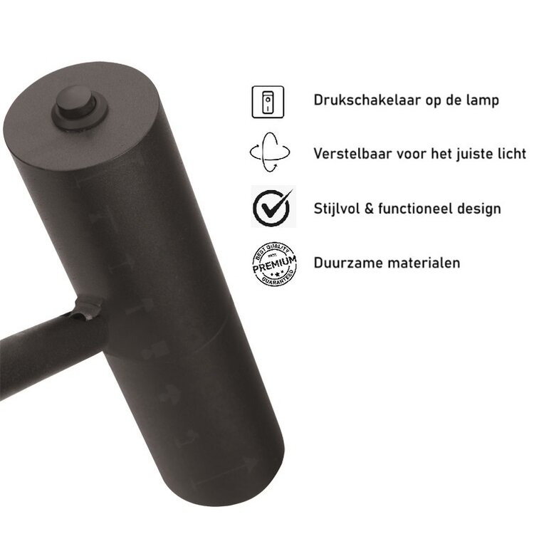 Een van de praktische kenmerken van deze leeslamp is de geïntegreerde drukschakelaar, handig geplaatst op het kapje van de lamp. Hierdoor is de lamp eenvoudig te bedienen zonder dat je hoeft te zoeken naar een schakelaar aan een snoer. Dit maakt de Freelight Undici niet alleen stijlvol, maar ook zeer gebruiksvriendelijk.
