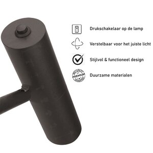 Een van de praktische kenmerken van deze leeslamp is de geïntegreerde drukschakelaar, handig geplaatst op het kapje van de lamp. Hierdoor is de lamp eenvoudig te bedienen zonder dat je hoeft te zoeken naar een schakelaar aan een snoer. Dit maakt de Freelight Undici niet alleen stijlvol, maar ook zeer gebruiksvriendelijk.