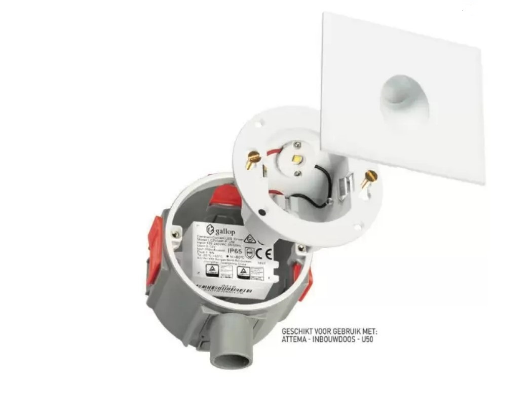 Een wand inbouw armatuur van top klasse! Deze wand inbouwspot is geschikt te monteren in een inbouwdoos U50 inbouwdoos van Attema. Hierdoor zijn de armaturen snel en eenvoudig te plaatsen in elke wand.