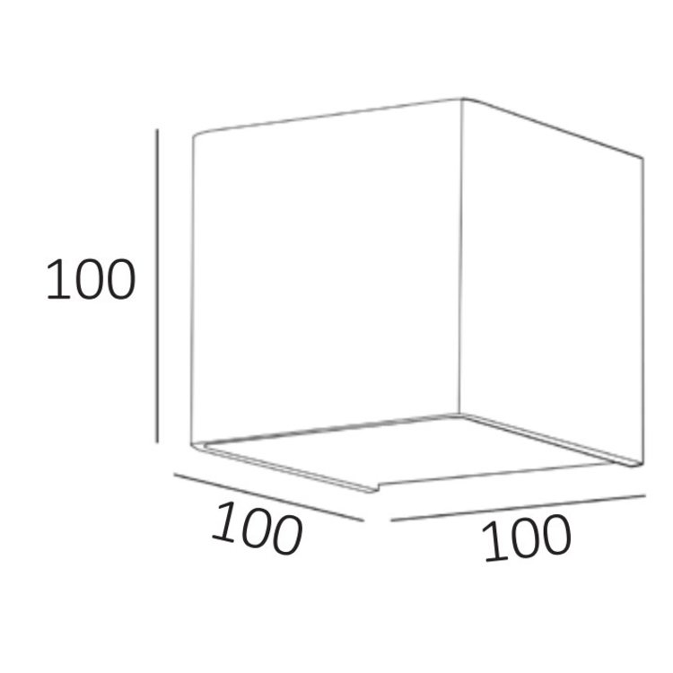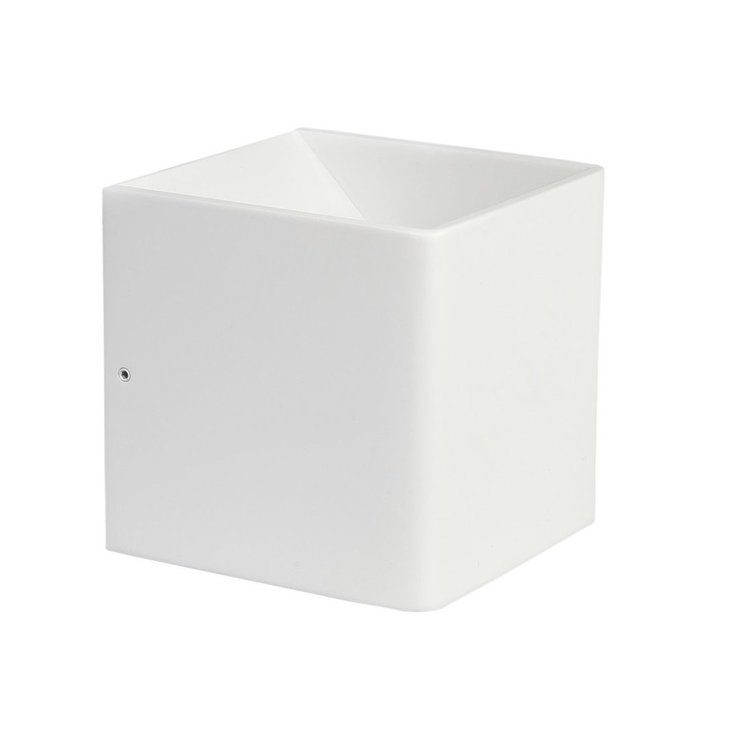 De strakke wandlamp wordt geleverd zonder een aansluitsnoer, inclusief een 6 watt led module en is 10 centimeter breed, 10 centimeter hoog en 10 centimeter diep.