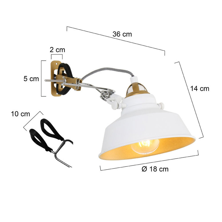 De wandlamp is voorzien van een schakelaar, waarmee je hem gemakkelijk aan en uit kunt zetten.
