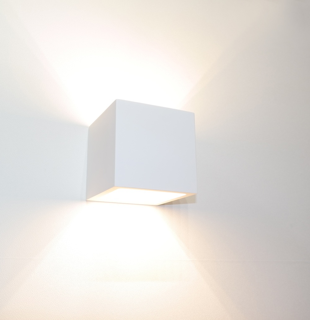 De wandlamp Plaster Vierkant Wit van het merk Artdelight is een vierkante maar strakke wandlamp gemaakt van hoogwaardige kwaliteit gips. Dit eenvoudige model lamp verspreidt het licht op de muur als een zandloper, waardoor je een apart lichteffect creëert.