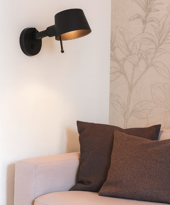 De wandplaat van 14 cm zorgt voor een stevige, stijlvolle basis. De lamp wordt geleverd met een zwart aansluitsnoer, dat je eenvoudig kunt verwijderen als je liever een directe aansluiting op het lichtpunt gebruikt.