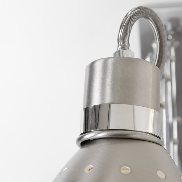 Een industriële stalen wandlamp met draaidimmer verwerkt op de wandplaat. Deze wandlamp is voorzien van een E27 fitting voor maximaal 40watt Doordat de arm scharniert en de reflector kantelbaar is kunt u deze zo richten dat u precies daar licht krijgt.